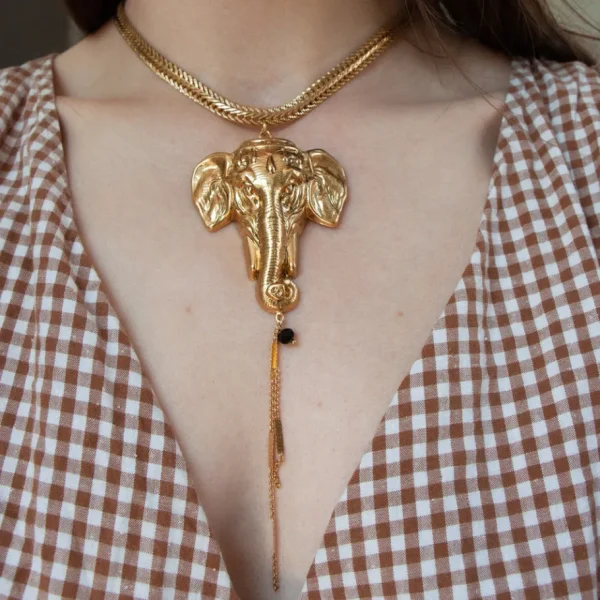 Collier Elephant Doré- Collier en laiton doré or fin, patiné- Longueur: Ajustable par une chainette et un mousqueton…