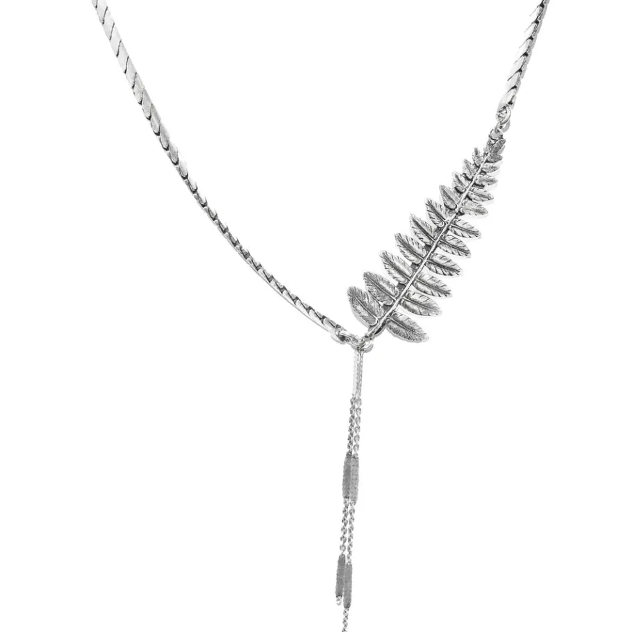 Collier Fougère- Collier argenté, patiné- Longueur: 40cm- Inoxydable- Sans Nickel- Livré avec une pochette tissée m…
