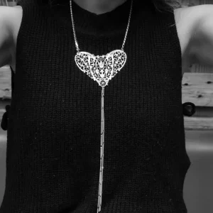 Collier Grand Cœur Filigrane- Collier argenté, patiné- Longueur: 40cm- Inoxydable- Sans Nickel- Livré avec une poche…