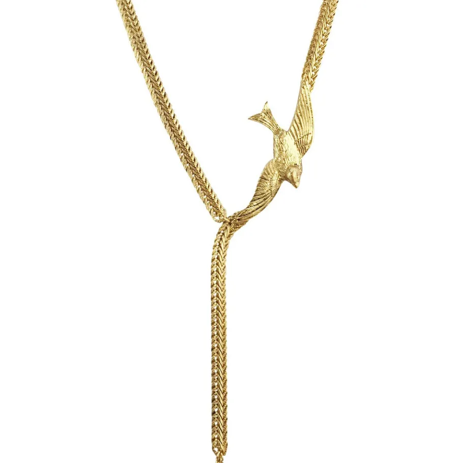 COLLIER L’ENVOL- Collier doré Or fin, patiné- Longueur: 50cm et 17cm de chaines qui pendent- Inoxydable- Sans Nickel-…