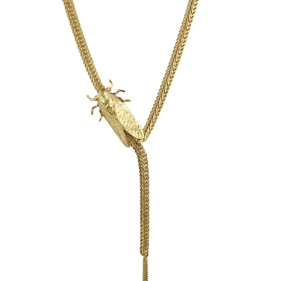 Collier Plastron Cigale- Collier doré Or fin, patiné- Longueur: 50cm et 17cm de chaines qui pendent- Inoxydable- Sans…