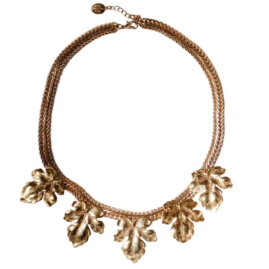 Collier Plastron Feuilles de Figuier Doré
