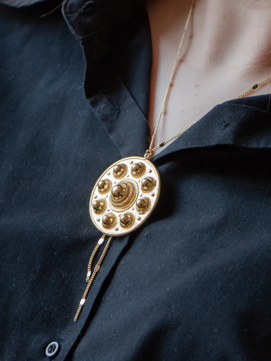 Découvrir la nouvelle collection Roma au motif romanesque.- Collier dore or fin, patiné- Longueur: 40cm- Inoxydable-…