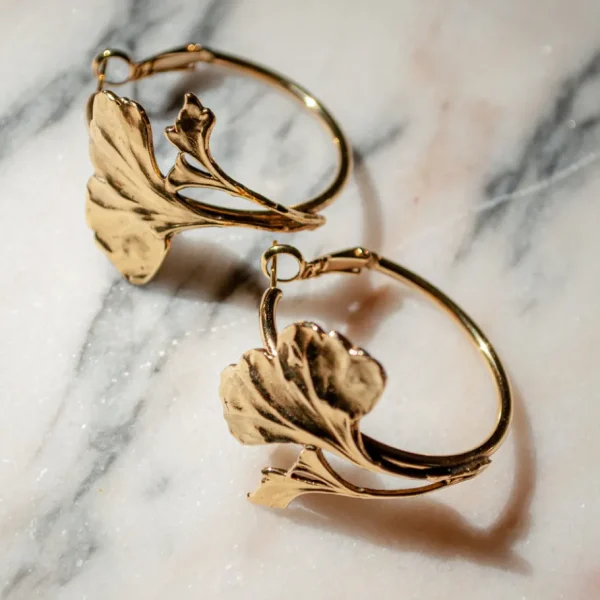 Boucles d’Oreilles Créole Ginkgo Dorées